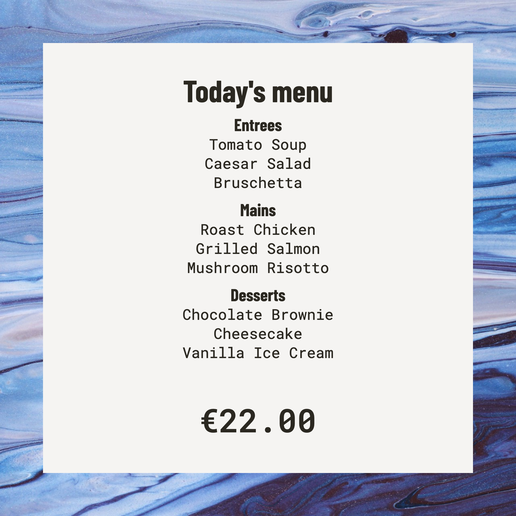 Build your menu once in Menuplate and reuse the same up-to-date version in print, QR, social media, and on the web, so your menu looks beautiful everywhere.